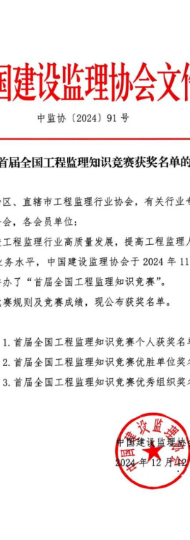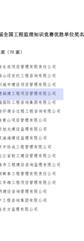 承擔工程監理和全過程工程咨詢服務的多個項目先后榮獲6項國家級獎項(魯班獎兩項、國優工程獎兩項、中國鋼結構金獎、中國安裝之星獎),及數十項省級優質工程獎。