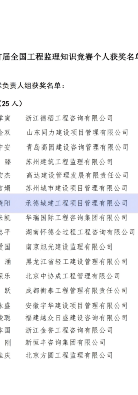 過去的一年里,面對嚴峻的市場環境,公司全體員工團結一心、砥礪奮進,總體完成了經營指標,實現了“保收入、保開支”的雙保目標,確保了公司的正常運轉。公司榮獲“河北省工程監理行業品牌企業”和“河北省工程造價咨詢行業品牌企業”兩項大獎,成功取得水利工程施工監理乙級資質。成功舉辦了公司成立25周年暨再獲國優獎系列慶祝活動,公司榮獲首屆全國工程監理知識競賽“優勝單位獎”,參賽選手榮獲“個人二等獎”。