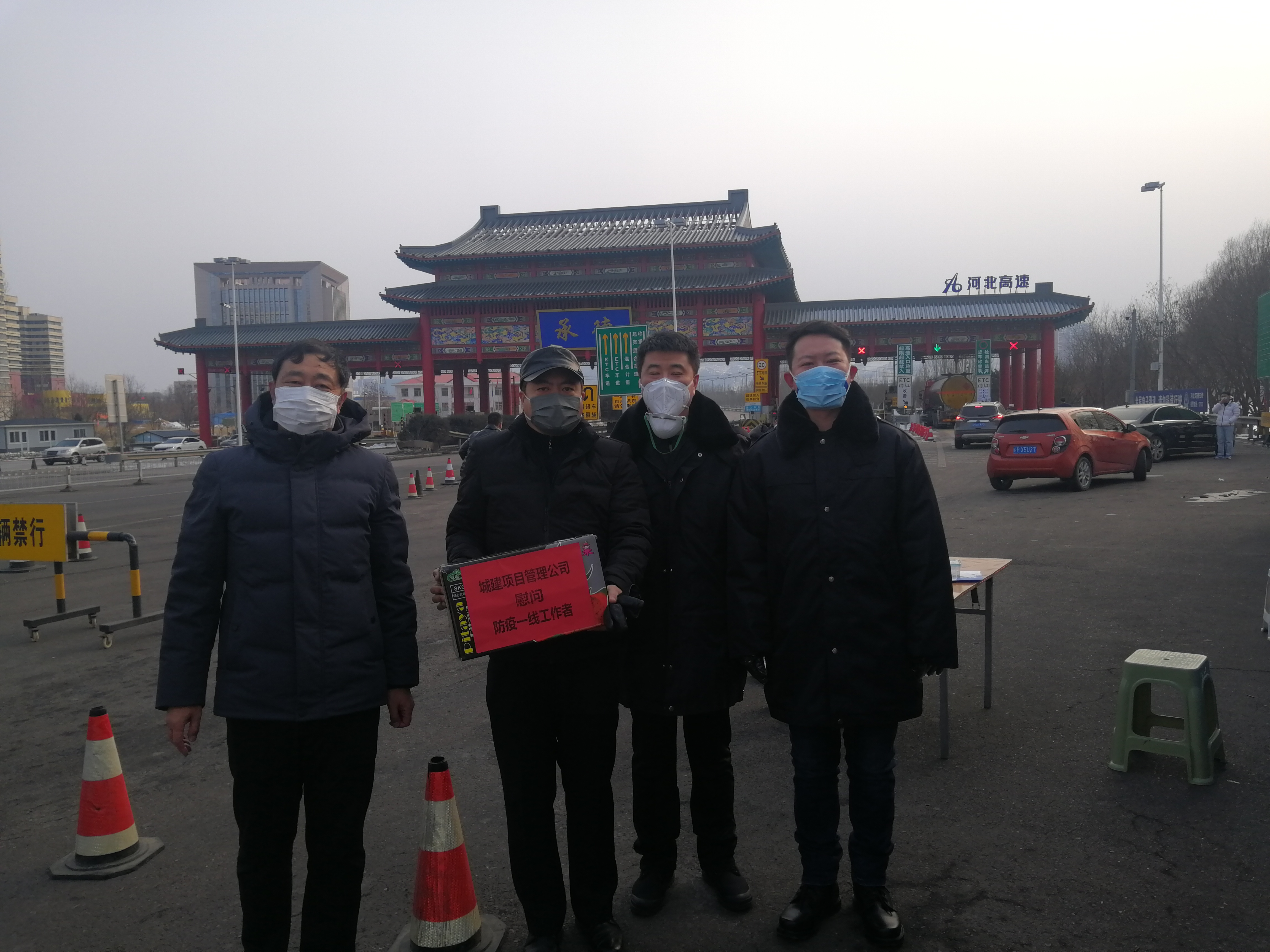 承德城建工程項(xiàng)目管理有限公司為全力支持疫情防控工作,以公司副總經(jīng)理、總工張衛(wèi)東為首一行人,來(lái)到大石廟、雙峰寺和獅子園高速口,慰問(wèn)在寒冷的天氣里,堅(jiān)持現(xiàn)場(chǎng)檢疫檢測(cè)工作的防疫一線工作者們,代表公司向他們致以崇高的敬意!